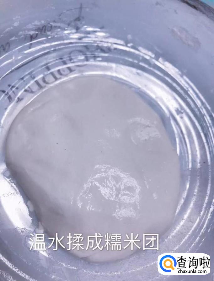 然后将糯米粉加入适量的温水,揉成糯米团,如下图所示。小贴士:大家在搓揉糯米糖的过程当中,如果比较干,可以继续加入适量的温水,继续揉就可以了。