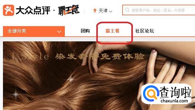 然后,我们回到首页,在全部分类旁边醒目位置有“霸王餐”标签,点击进入。(默认进入的是本地的商圈及活动)