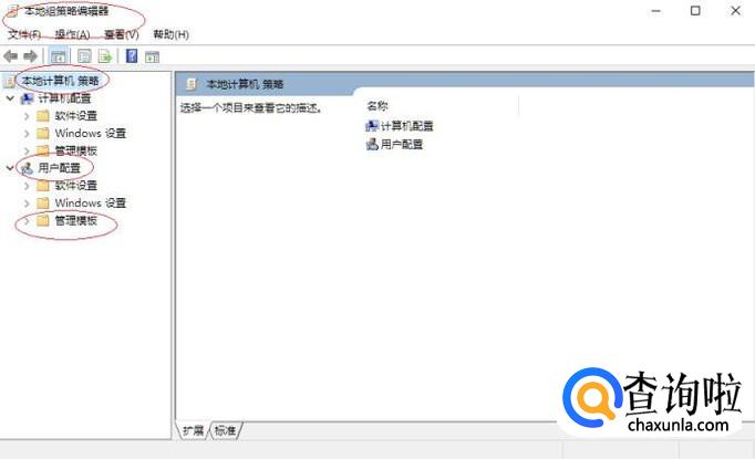 唤出"本地组策略编辑器"程序窗口,如图所示。展开左侧树形目录结构,选择"用户配置→管理模板"项。