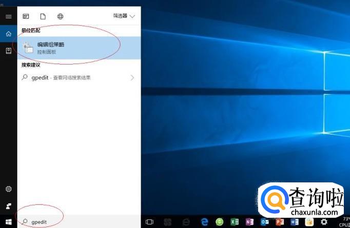 如图所示,搜索框输入"gpedit"。Cortana(小娜)显示搜索结果,点击"最佳匹配→编辑组策略"项。