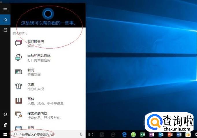 启动Windows 10操作系统,如图所示。点击任务栏搜索框,开始使用Cortana(小娜)智能语音助理。