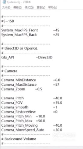 等号后的数,数值越大,视角越高。(建议改为57)改好以后保存记事本。
