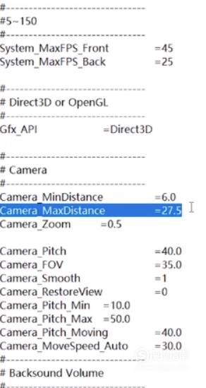 然后在记事本中找到“Camera MaxDistance=27.5”这一行。