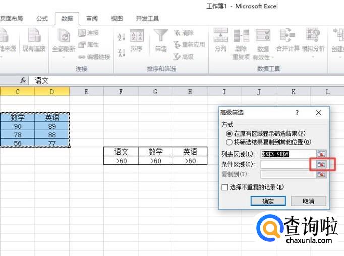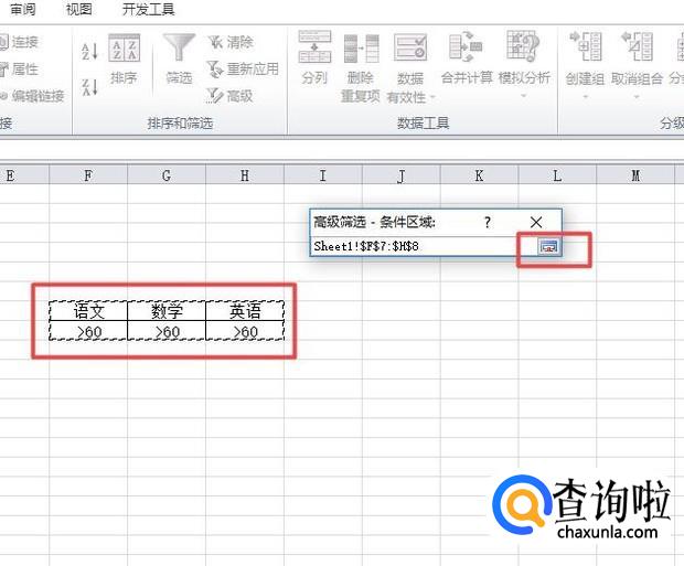 然后我们点击条件区域边上的引用符号;
