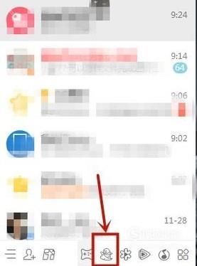 接着点击屏幕下方的qq游戏图标,如下图所示。