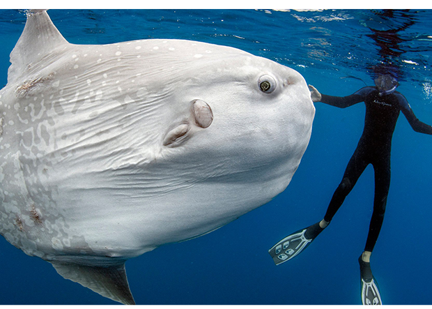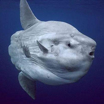 翻车鱼是世界上最大、形状最奇特的鱼之一。它们的身体又圆又扁,像个大碟子。鱼身和鱼腹上各有一个长而尖的鳍,而尾鳍却几乎不存在,于是使它们看上去好像后面被削去了一块似的。翻车鱼主要以水母为食,用微小的嘴巴将食物铲起。它们常常在水面晒太阳,尽管其形状笨拙,但有时也会跃出水面。