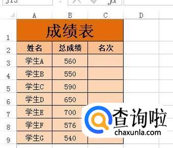 比如,下图中的成绩表。从高到低进行排名。