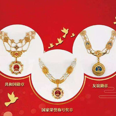 国家勋章,是国家最高荣誉,国家设立国家功勋簿,记载国家勋章和国家荣誉称号获得者及其功绩。国家勋章和国家荣誉称号是国家最高荣誉。“共和国勋章”授予为党、国家和人民的事业作出巨大贡献、建立卓越功勋,道德品质高尚、群众公认的杰出人士。国家勋章是含有金的但并不是纯黄金打造。
