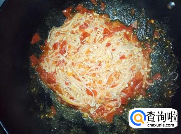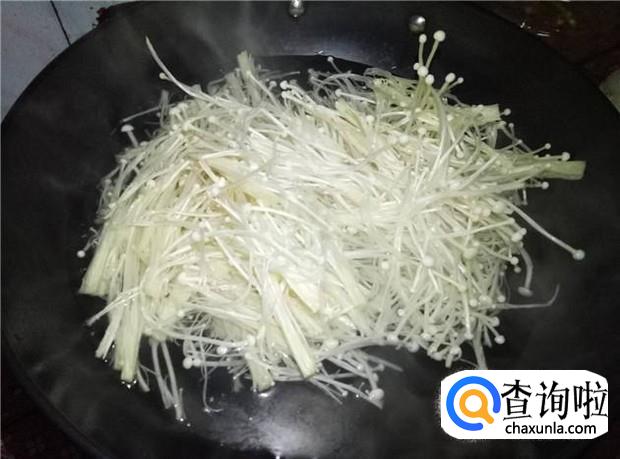 然后倒入烫过水的金针菇,搅拌均匀。