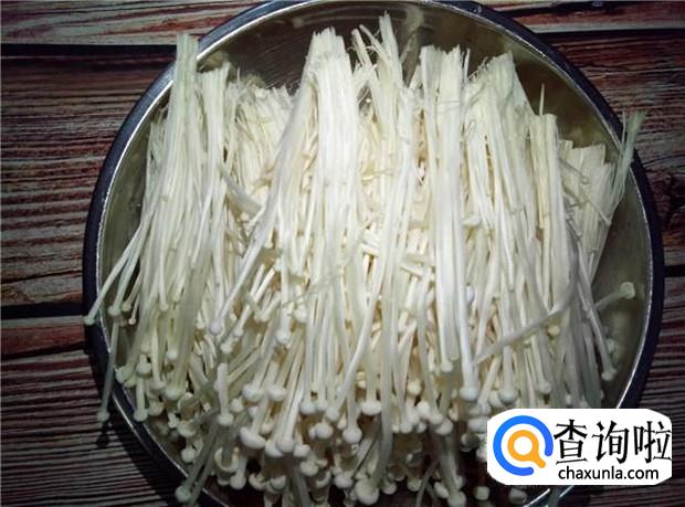金针菇切掉根部,撕成小块,清洗干净,备用。