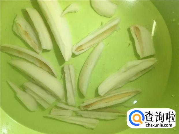 把切好的莲藕再次用清水清洗干净,把泥土给搓干净。