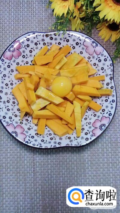 打入一个鸡蛋,一方面增加了营养,另外一方面也会让南瓜条更加酥脆。
