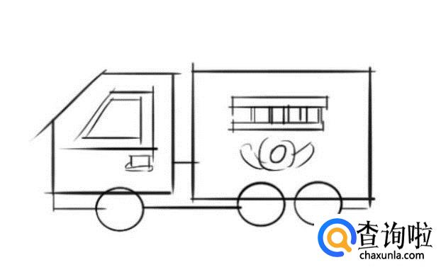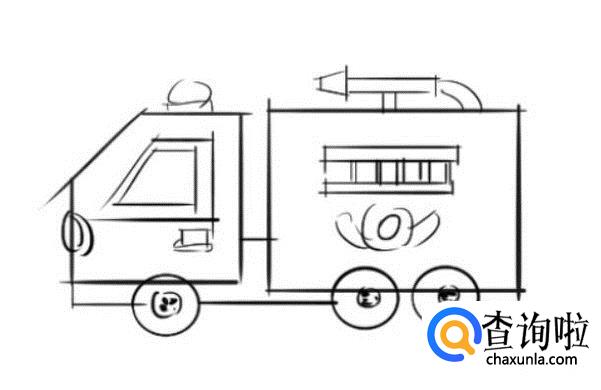 我们接着画车身的造型。上面是消防梯,下面是消防水管。