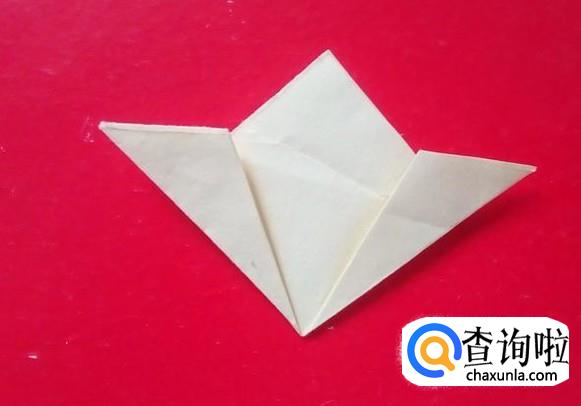 把上步向外翻折的部分打开,然后再从中缝沿折痕向下压实。