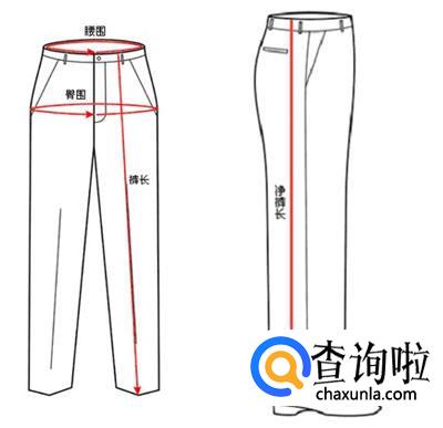 裤子腰围:两边腰围接缝处围量一周; 净腰围:在单裤外沿腰间最细处围量一周,按需要加放尺寸;