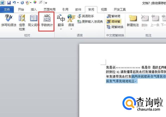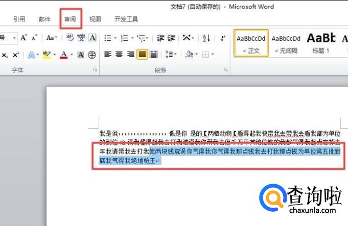 然后我们选中我们需要统计字数的地方,之后我们点击审阅;