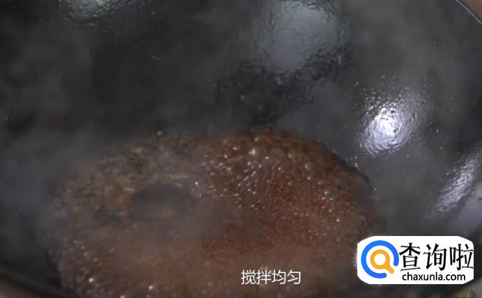 另起油锅,加入蒜末煸香,再加入水、老抽、黄酒、糖、白胡椒、蚝油搅拌均匀。