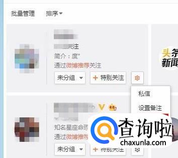 接着点击一个我们已经关注的好友右侧的设置按钮,如下图所示。