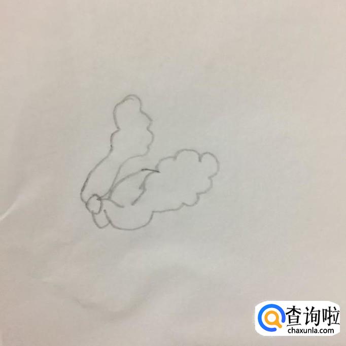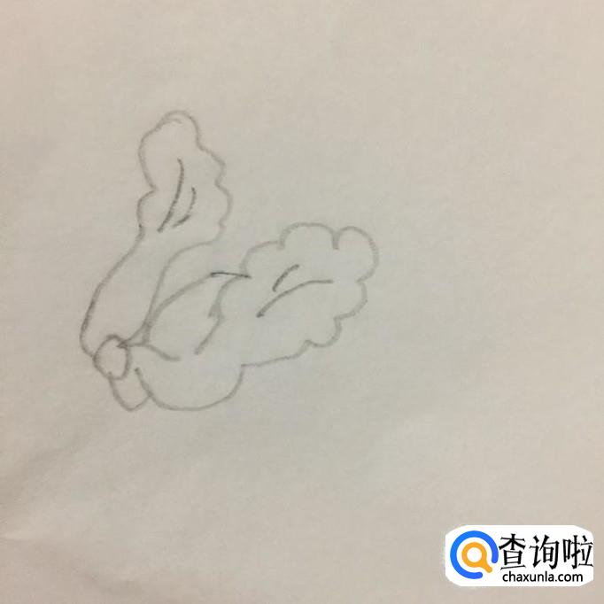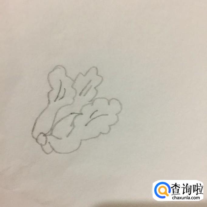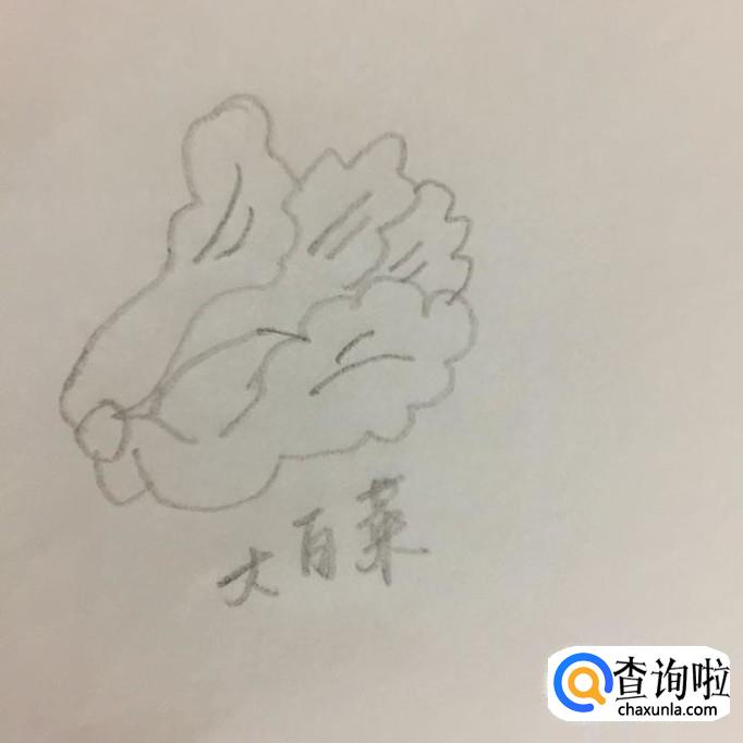 首先我们用铅笔在A4纸上画出大白菜外部轮廓,如下图所示。注意两边的叶子要往外展开。