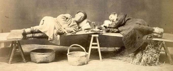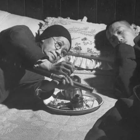 一般而言,最初几口鸦片的吸食令人不舒服,可使人头晕目眩、恶心或头痛,但随后可体验到一种伴随着疯狂幻觉的欣快感。为了达到斗麻木的瞑想状态,吸烟者需要纹丝不动和安静。吸食鸦片者在相当长的时间内尚能保持职业和智力活动,但如果吸烟太多,则变得瘦弱不堪,面无血色,目光发直发呆,瞳孔缩小,失眠,对什么都无所谓。很多长期吸食鸦片的人,看上去面黄肌瘦,毫无精神,就是竹竿一样,瘦的没一点肉,就像一个骨架,精神恍惚,行尸走肉一般。