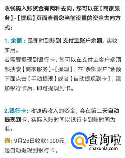 同时可以设置,收钱码的资金去向,可以到余额宝也可以到信用卡,目前提现是不收费的;