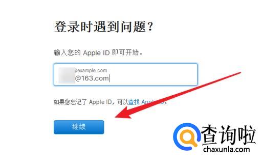 在方框中输入自己的Apple ID,然后选择【继续】这一项。