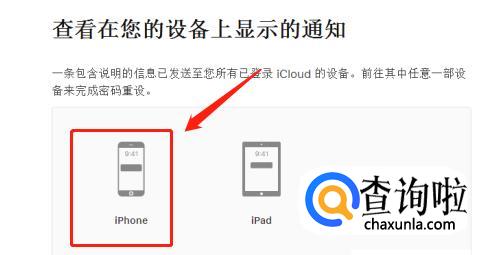 此时页面中出现了在设备上会推送通知信息的系统提示,选择接受提示消息的设备【iPhone】。