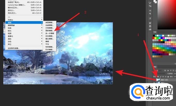 选中复制图层的选区,找到滤镜中的高斯模糊。