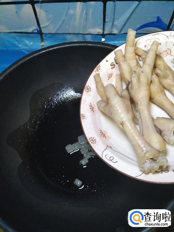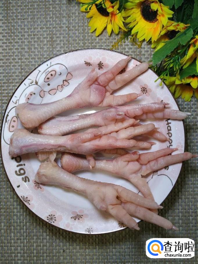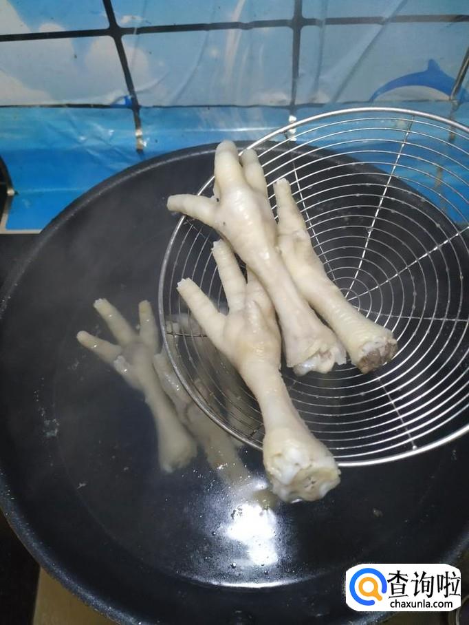 准备适量鸡爪,去除指甲,放入锅中焯水,焯好之后,捞出备用。