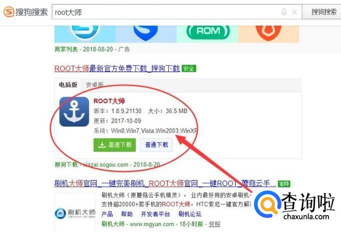 进入之后,搜索“root大师”,将其下载安装到电脑上面,如图所示。