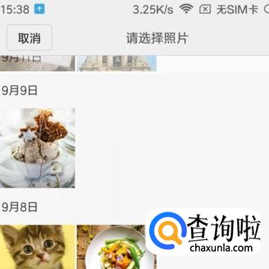 比如,选择:从相册选择;即时弹出手机相册文件夹,在众多的图片中选择其中一张图片。