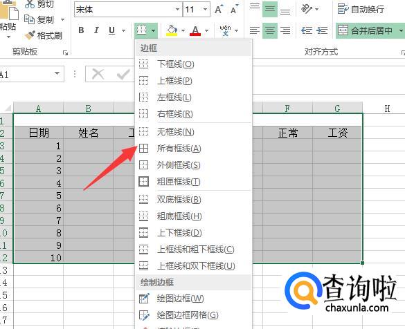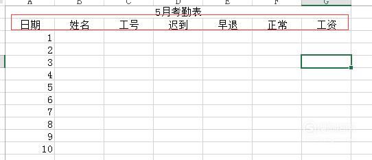 我们给表格添加一个标题,如:5月考勤表。