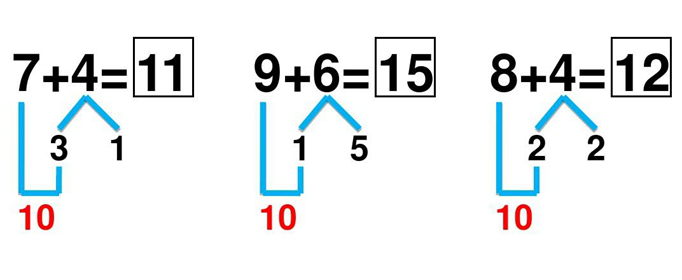 看大数,分小数,凑成十,加剩数。