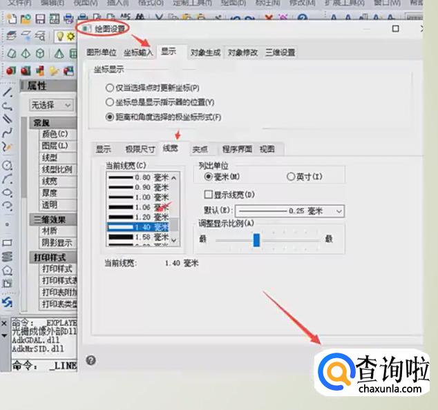 最后在编辑器的界面就会弹出一个对话框,在弹出的”绘图设置“对话框中,在当前线宽中就可以选择你想要的线条的粗细,最后点击确定。