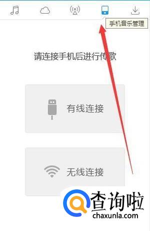 回到音乐播放界面,选择手机音乐管理,将手机连接电脑: