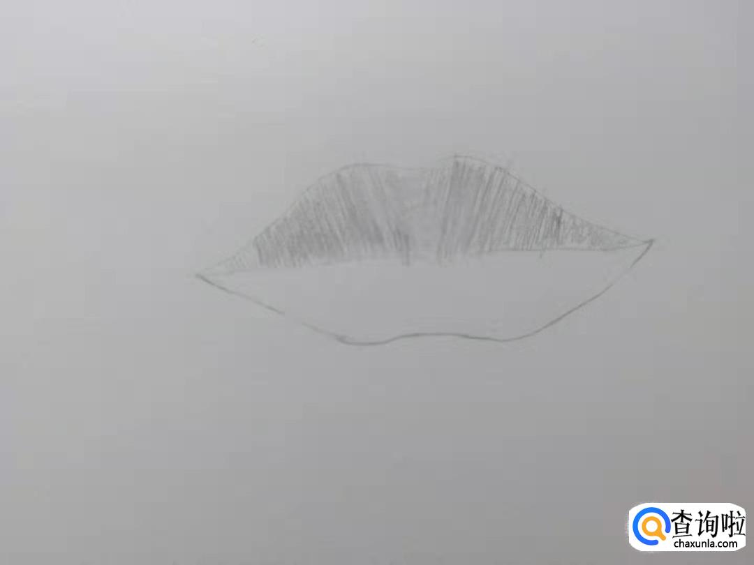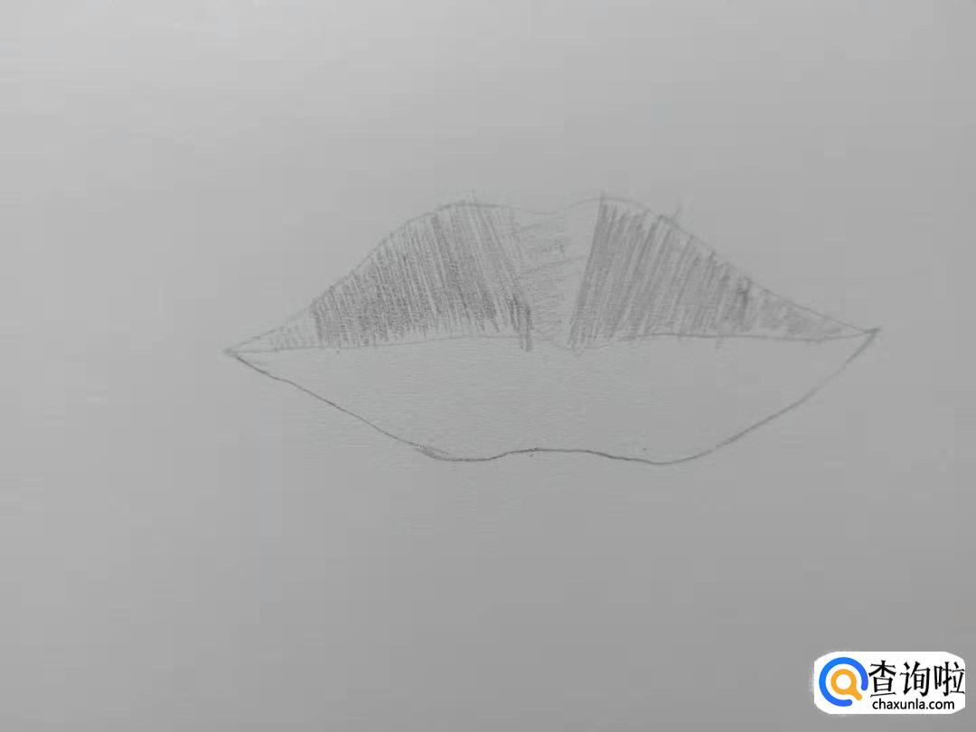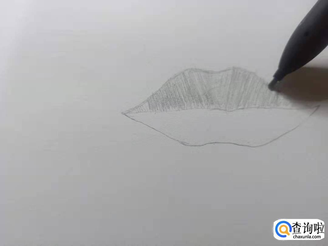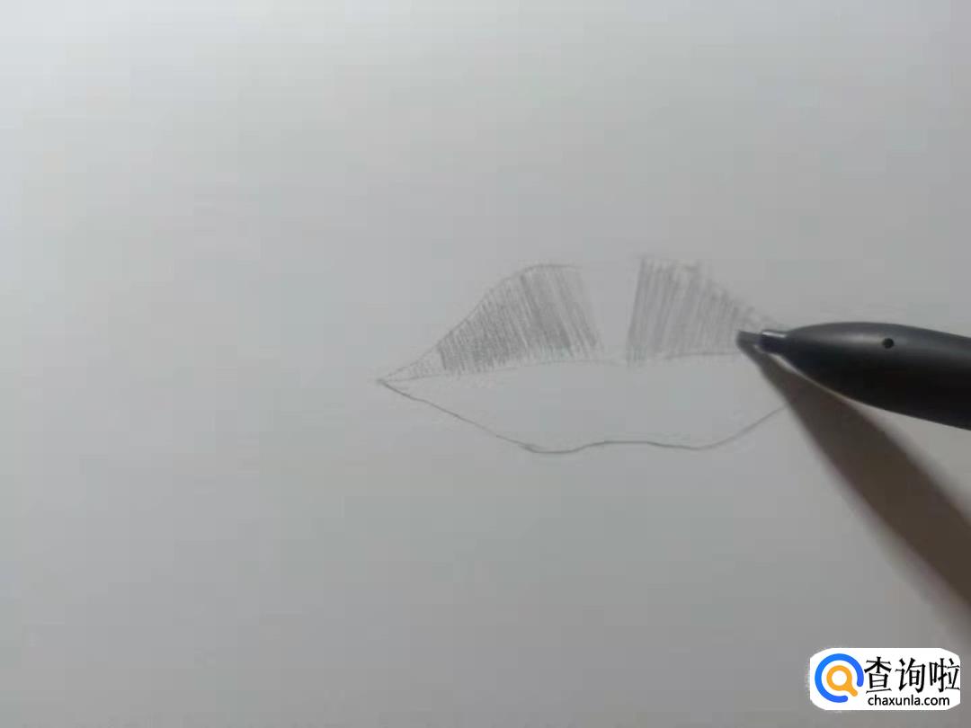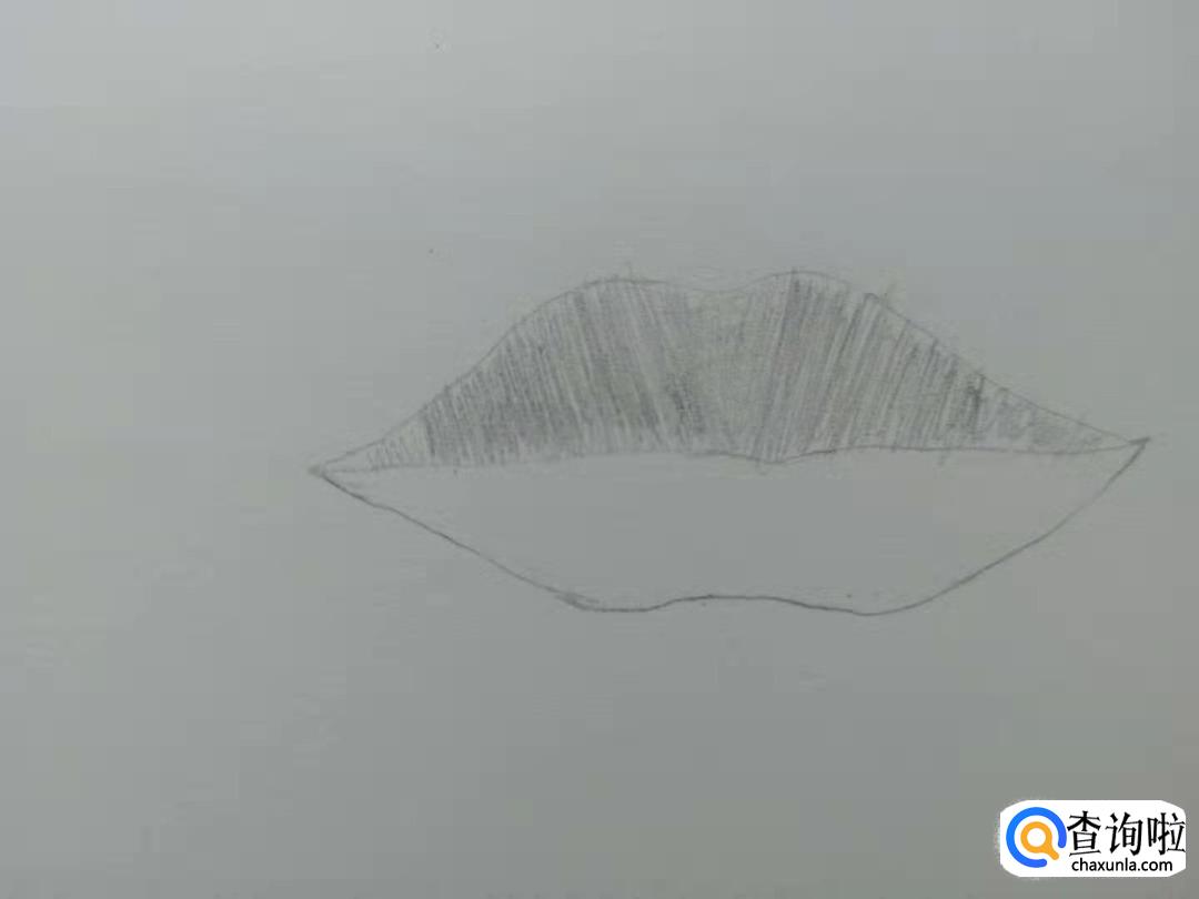 下唇也像上唇一样从两侧往中间画上许多竖的排线。