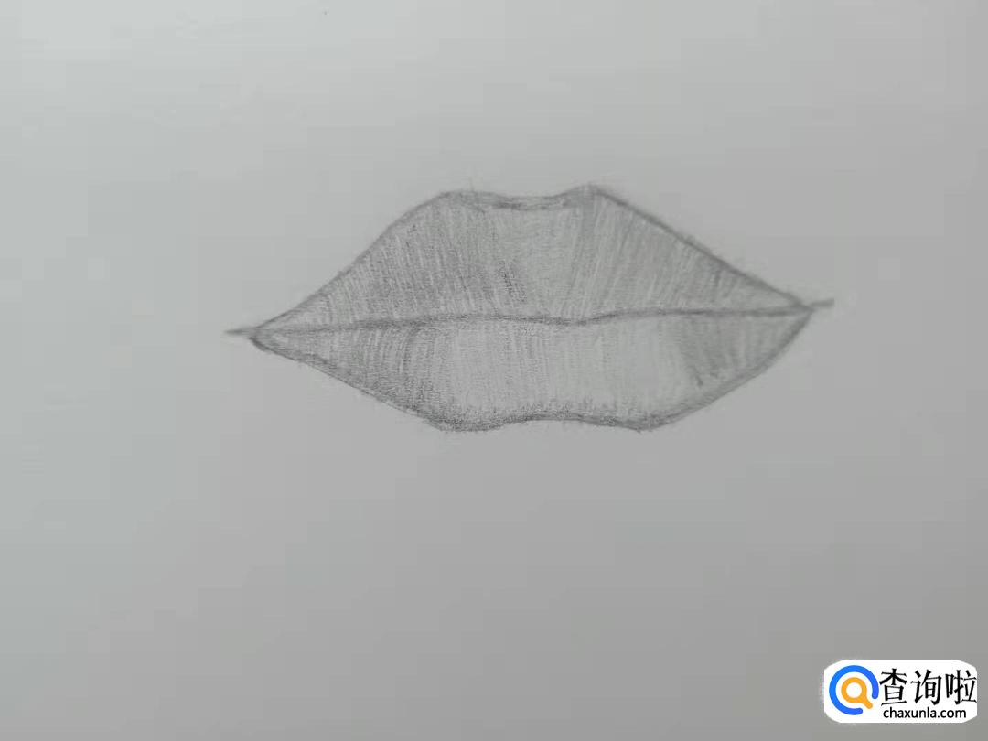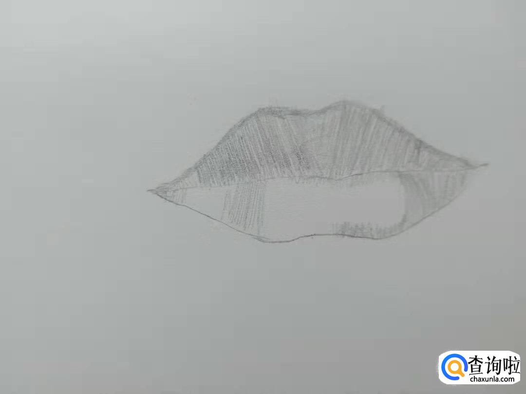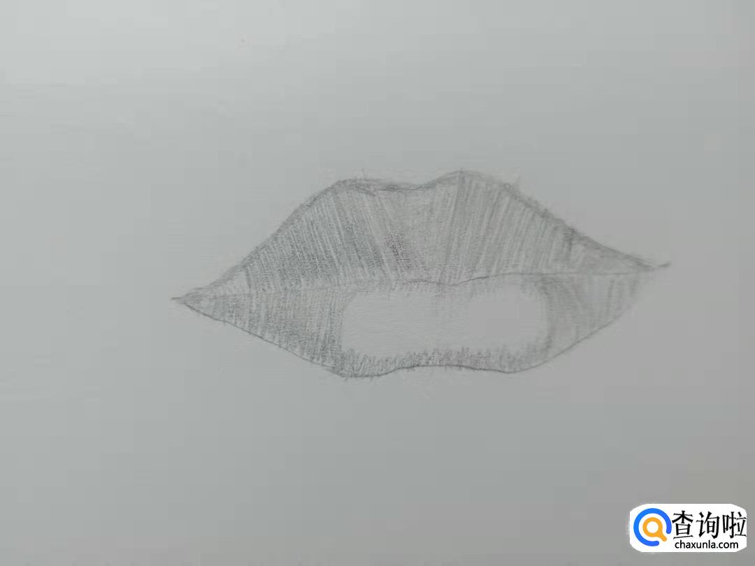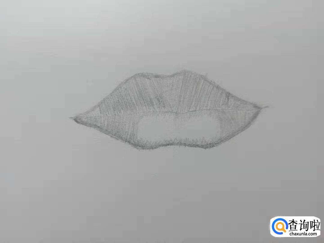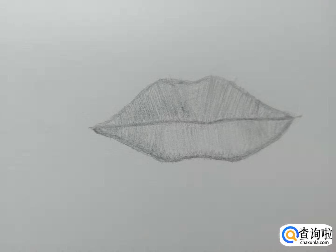 下唇也像上唇一样从两侧往中间画上许多竖的排线。