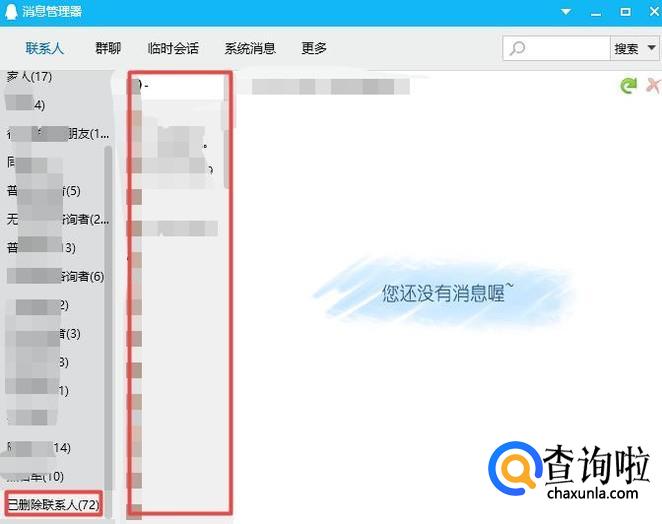 弹出的界面,我们点击已删除的联系人就可以看到自己删除过的人了;