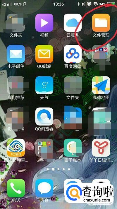 然后下面就可以传输文件了,首先打开手机,找到手机中的【文件管理】,点击进入,如图