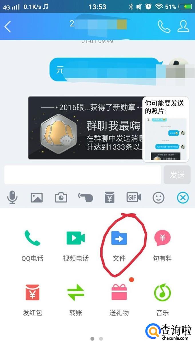 然后在出现的页面中选择【文件】,然后会出现文件选择页面,最后选择好文件点击发送就可以了。如图