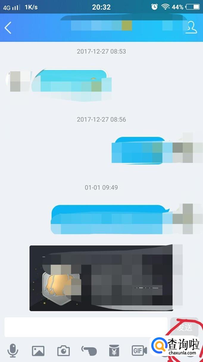 直接使用QQ的【对话框发送文件】,首先点开接受文件者的聊天对话框,然后在聊天对话框的右下角点击【+】符号,如图