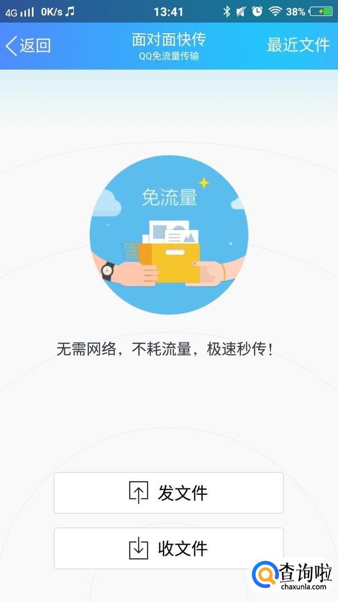然后在页面中选择【发文件】,(需对方打开面对面快传并选择【收文件】),如图