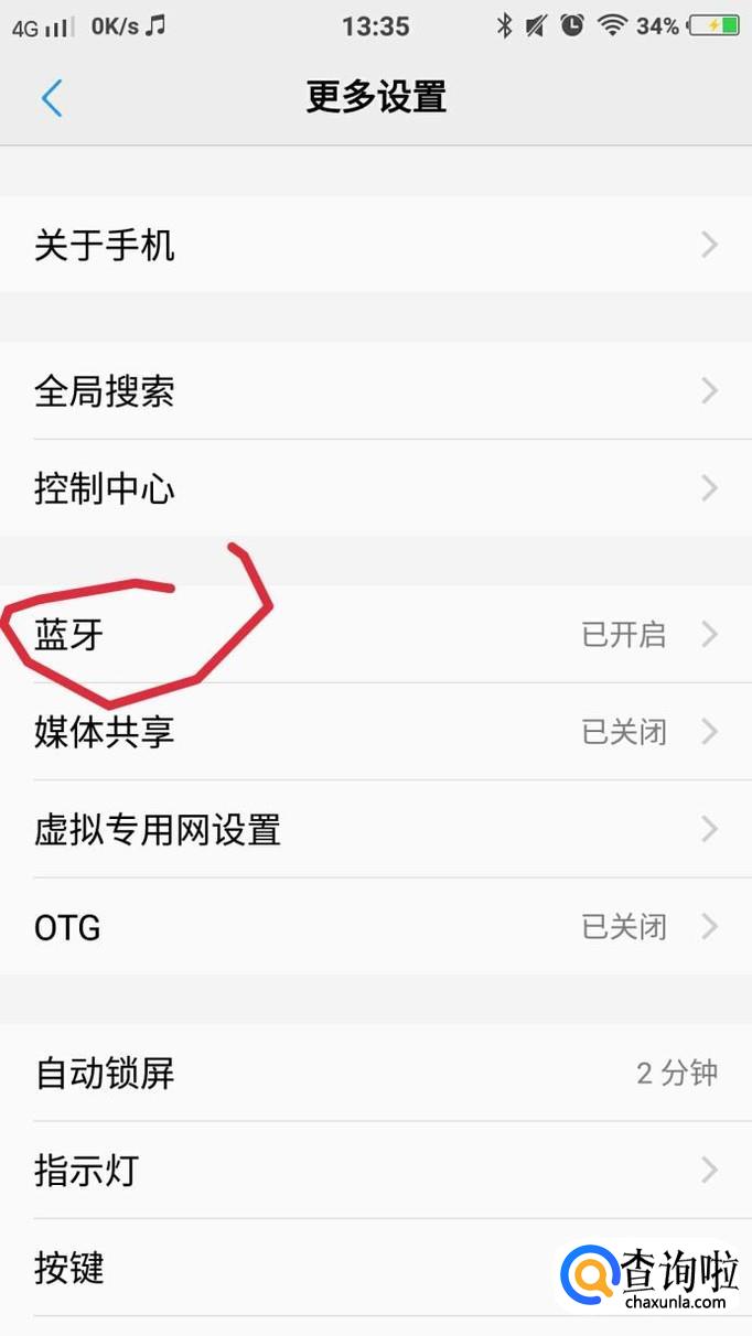 然后在设置中找到蓝牙,找不到就点击【更多设置】在里面找到【蓝牙】,如图
