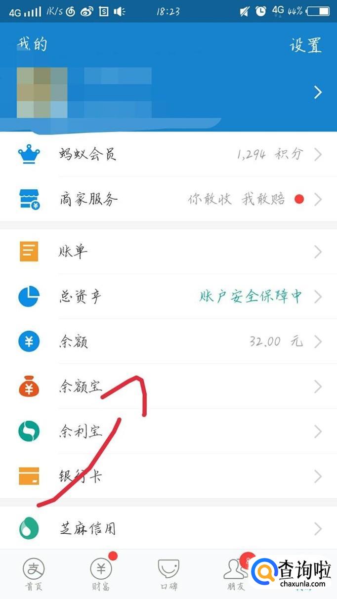 向下滑动手机,点击“余额宝”选项,如图1箭头所示。会进入一个新的界面,点击“转出”选项,如图2箭头所示。