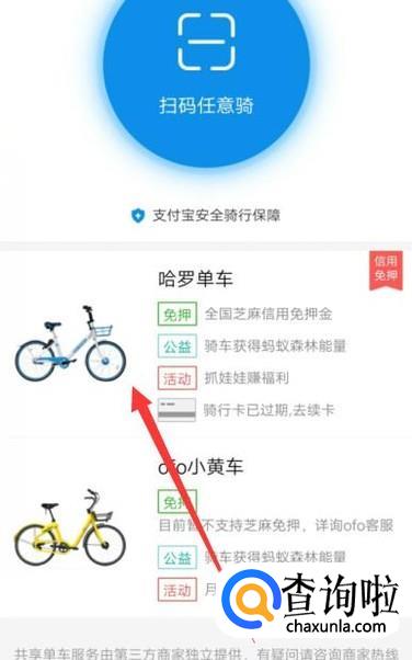 进入之后,点击“哈罗单车”,进入下一页面,如图所示。