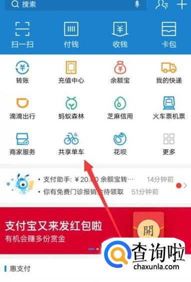 进入之后,选择“共享单车”,进入下一页面,如图所示。