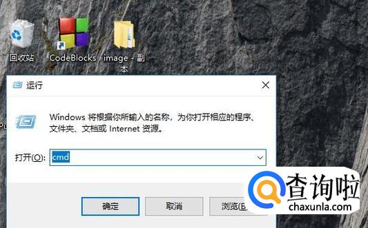 首先按Win+R组合键打开运行窗口,输入CMD命令,如下图所示