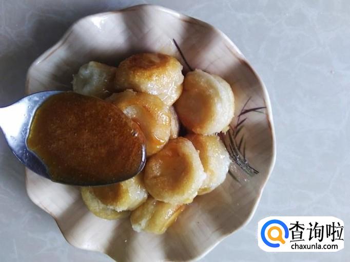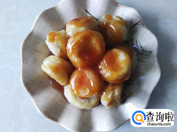 炸得8分钟左右,把丸子炸得金黄色捞上碟子。【熟透的丸子会胀大】
