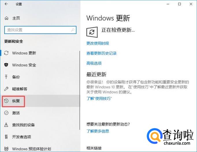 之后我们点击恢复;