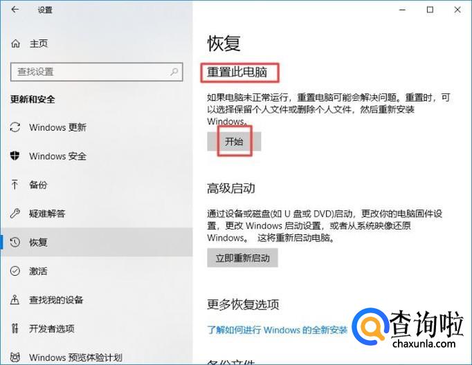 win10系统如何重置、还原、恢复出厂设置